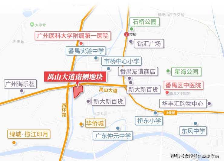 4km内3所甲级医院,番禺中心医院、番禺区中医院、何贤纪念医院均在侧,享受优质医疗,家人健康有保障!(直线距离,数据来源:百度地图)