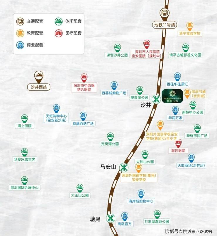 项目占位宝安沙井核心枢纽,近享地铁 11 号线沙井站,步行可达,快速衔接宝中、前海、福田等核心板块。周边毗邻宝安大道、外环高速等城市主干道,自驾出行高效便捷。同时可快速通达深圳国际会展中心、宝安国际机场,形成 “地铁 + 主干道 + 空港” 多维立体交通网络,无论是日常通勤、跨区出行还是商务往来,都能实现高效通达,区位交通优势十分突出。