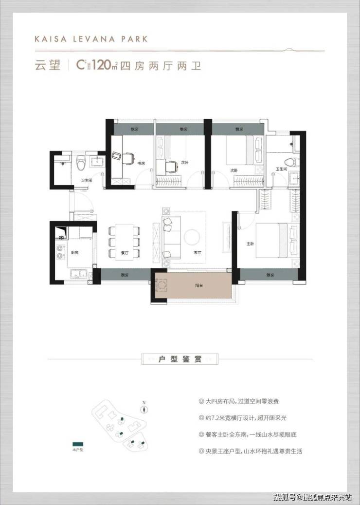 约120㎡四房:宽敞空间尺度,四房配置,彰显生活品质,适合改善型家庭