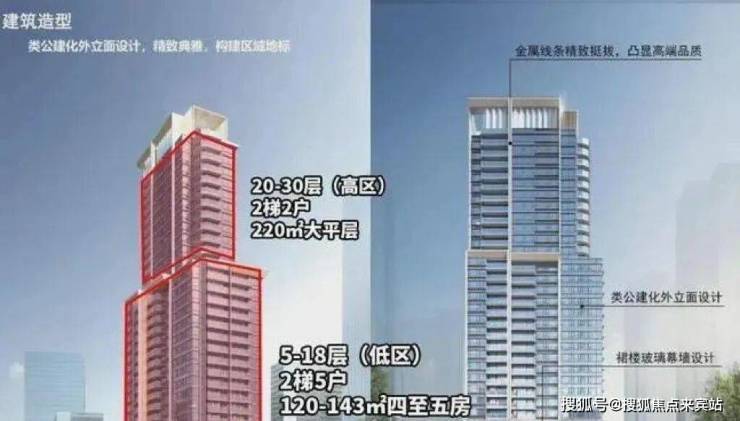【层高】:5-18层,2梯5户,户型为120-143㎡四至五房;20-30层,2梯2户,户型为220㎡大平层。