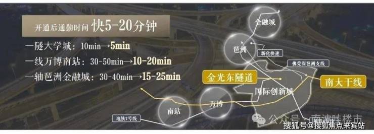 金光东隧道:距离项目仅900m,打通大学城一江两岸,真正实现5分钟大学城,15分钟琶洲、20分钟金融城、30分钟珠江新城
