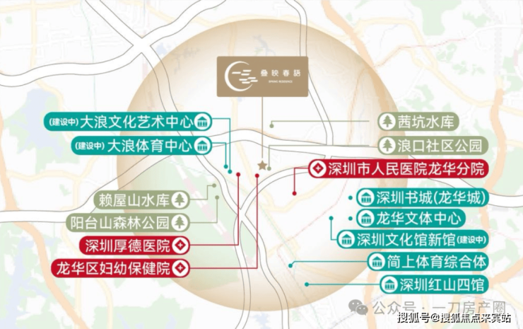 2公里坐拥文体“双子星”一一大浪文化艺术中心和大浪体育中心(建设中);3公里享受龙华文体中心(区域超大型文体综合空间)、深圳书城(龙华城)