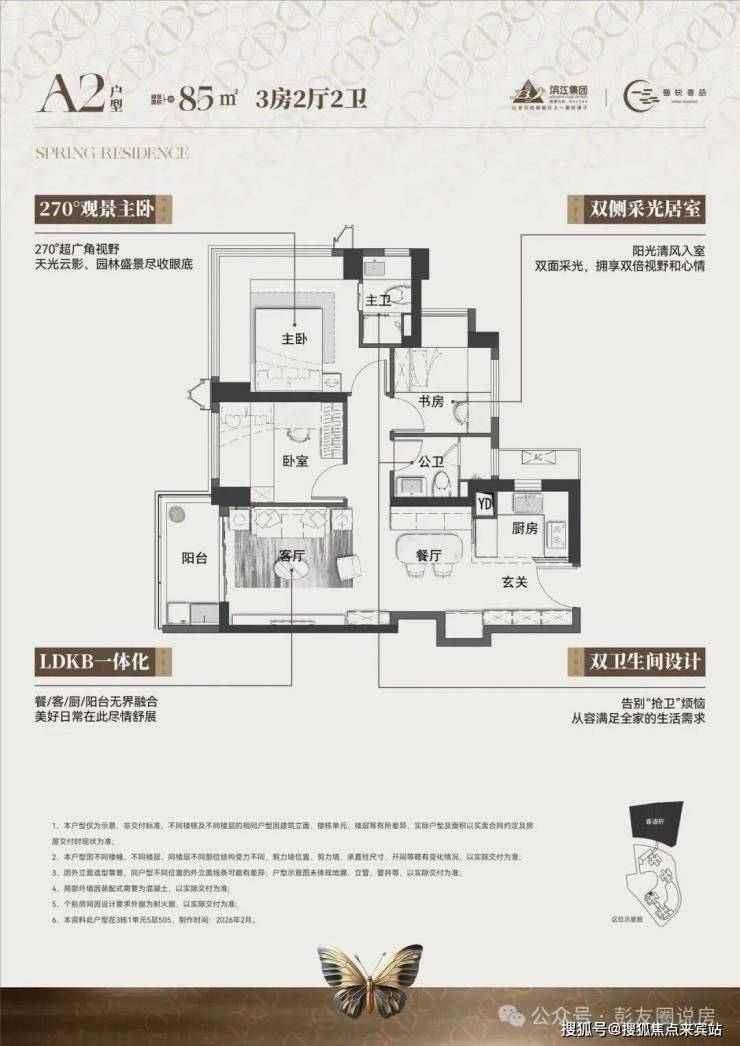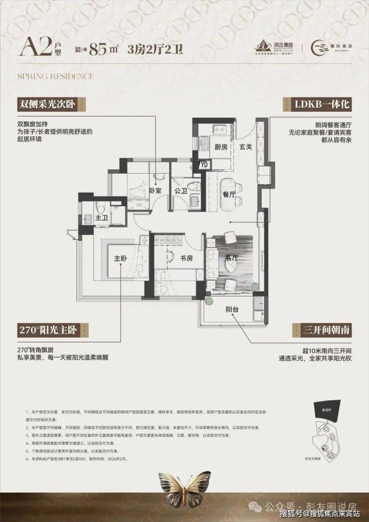 3栋1单元5层505,A2户型 建面约85㎡,3房2厅2卫