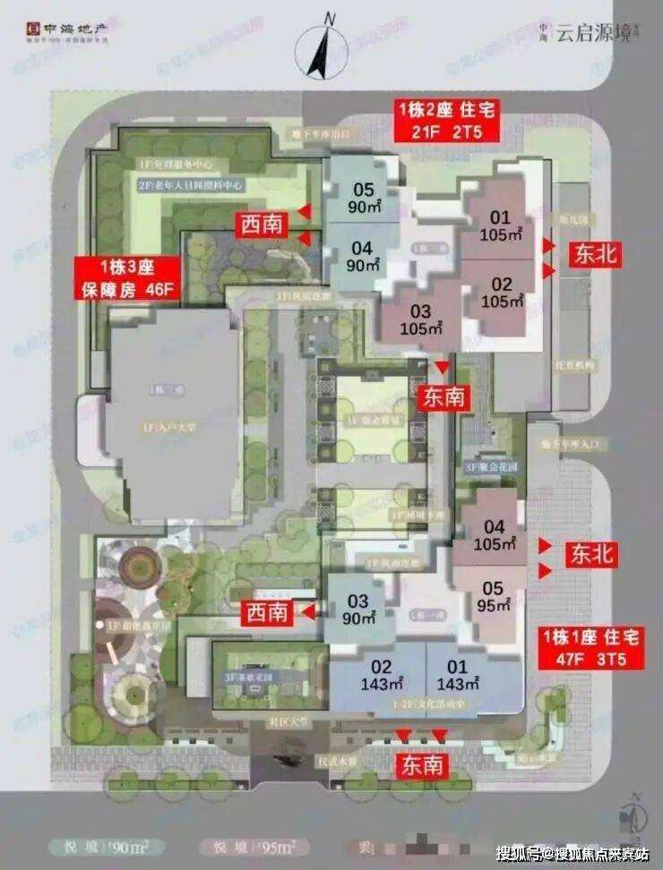 云启的占地面积不大,仅有约9000平,由3栋塔楼组成,其中2栋住宅,分别是47层和21层,1栋保障房,总户数708户,普通商品房298户,保障性住房410户,停车位598个。