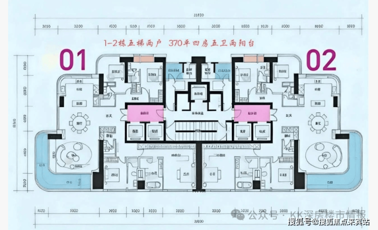 1-4栋和1-5栋、三梯两户、西南向、每户305平