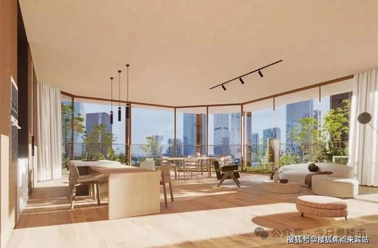 超高层观景面采用落地玻璃,深圳湾视野开阔,无需阳台即可观赏海景。