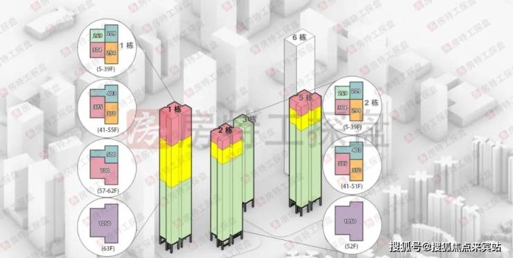 ✅ 楼栋规划:5栋超高层塔楼(4栋住宅+1栋250m公寓),住宅层高3.6m,使用率超92%