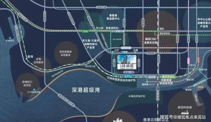 金地环湾城坐落于福田大金沙片区,总建筑面积约103万㎡,由金地集团与福田建设集团联合开发。项目以"深港超级湾时代的世界级综合体"为定位,涵盖高端住宅、公寓、商业、办公、文化、学校、公园、顶奢酒店八大业态,打造真正意义上的"微缩城市"。