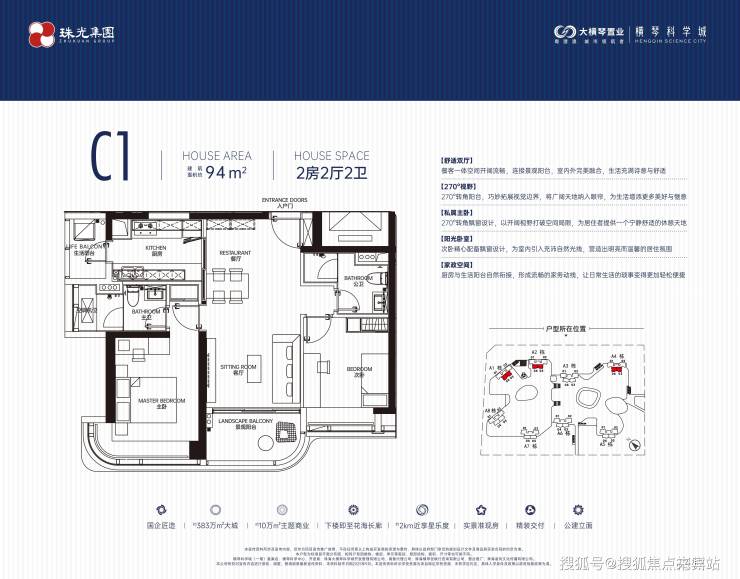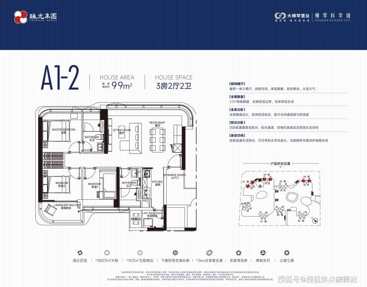 仅568席品质准现房 精致生活空间横琴科学城一期,仅6栋568席准现房住宅,建筑面积约94-100㎡精致户型,精装交付,两室及三室格局,皆以人性化设计满足多样生活需求。