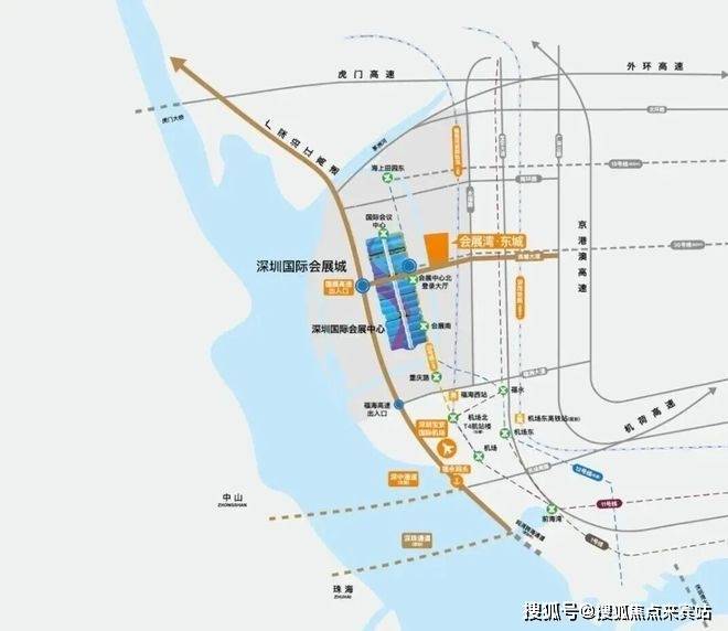 会展湾·东城项目位于深圳市宝安区空港新城,毗邻深圳国际会展中心,项目属性为总建筑面积57.5万平方米的城市综合体,功能主要包含商务公寓、人才公寓、社区商业、酒店、幼儿园等,作为国际会展中心的重要配套,发挥着深圳融入湾区的示范作用,受益于国家战略落地,未来发展潜力巨大。