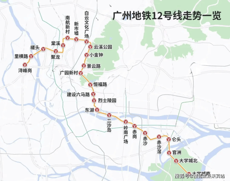 12号线(已通车)-广州换乘之王,广州市第一条无人驾驶地铁线路,与十数条轨道线无缝换乘,共经过白云文化广场、烈士陵园、二沙岛、赤沙等17个换乘站,可直达大学城,连通白云、越秀、海珠、番禺四大区域。