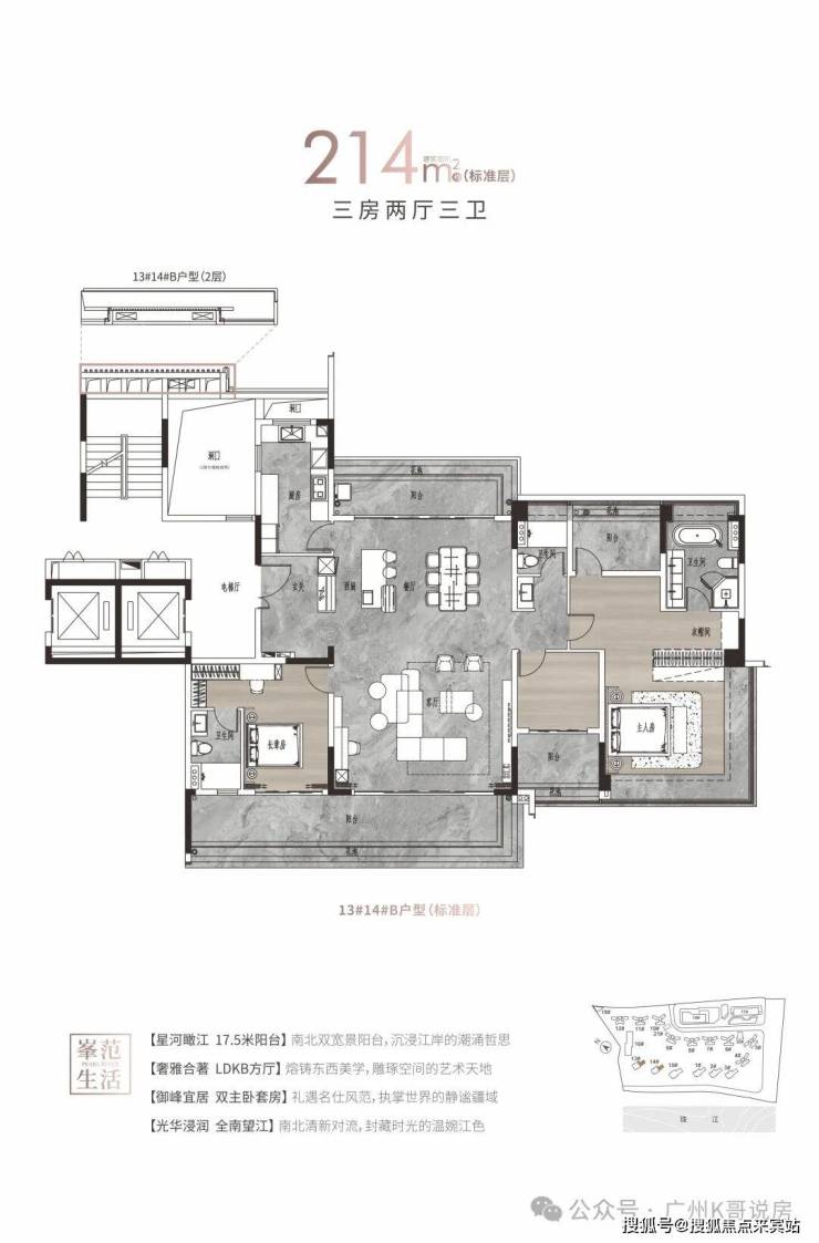 【户型面积】:约125-142㎡四房两厅两卫/214-313㎡大平层