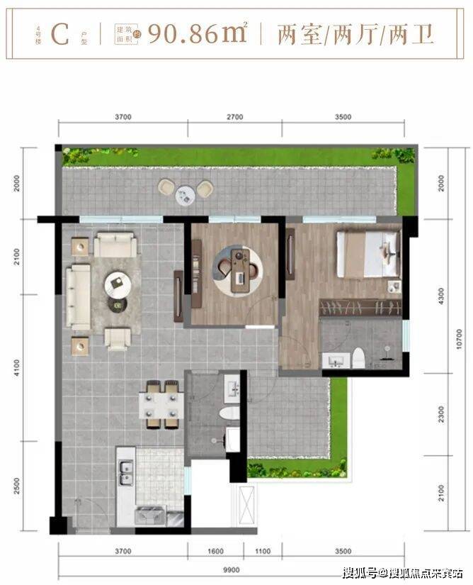 ✨4楼C户型约90.86㎡两房两厅两卫