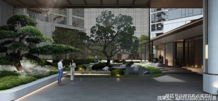 罗汉松+小叶紫檀水景迎宾,归家见水,别有洞天。