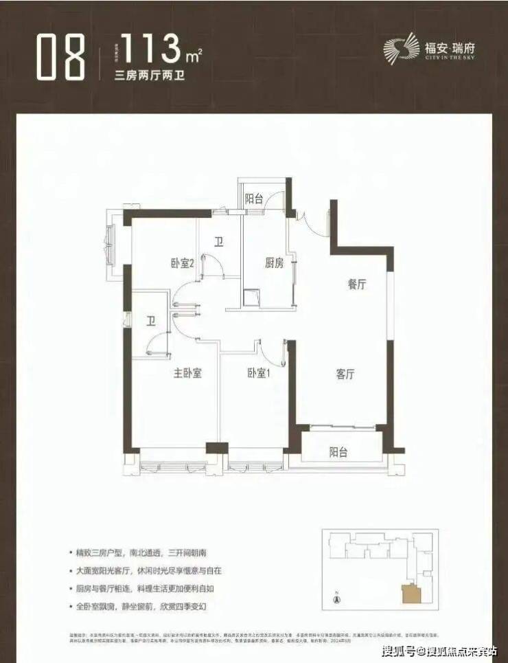 福安瑞府全套户型图已经公示,主推建面约97-98-112-126-143㎡的3-4房产品。户型均设计有双阳台、双套房。其中,97-98㎡3房两卫户型为双龙抱珠格局;113㎡户型为经典竖厅格局;126㎡的4房2卫设计有大景观阳台,不过户型整体欠方正;143㎡户型功能分区欠佳,不过三面采光较好。福安瑞府的户型以刚改为主,小区规模不大,且主要以回迁房为主,甚至宝保障房的套数也比商品房多。这类小区可能对纯居住的业主来说,居住氛围或有不足,或难以形成良好的邻里关系。
