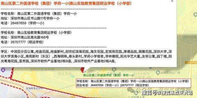 处南二外学府一小和南二外学府中学学区范围内,直线距离约900米还有深圳南山实验教育集团明远学校