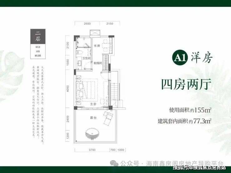 二期在售户型1:跃层洋房77.3㎡三房一厅