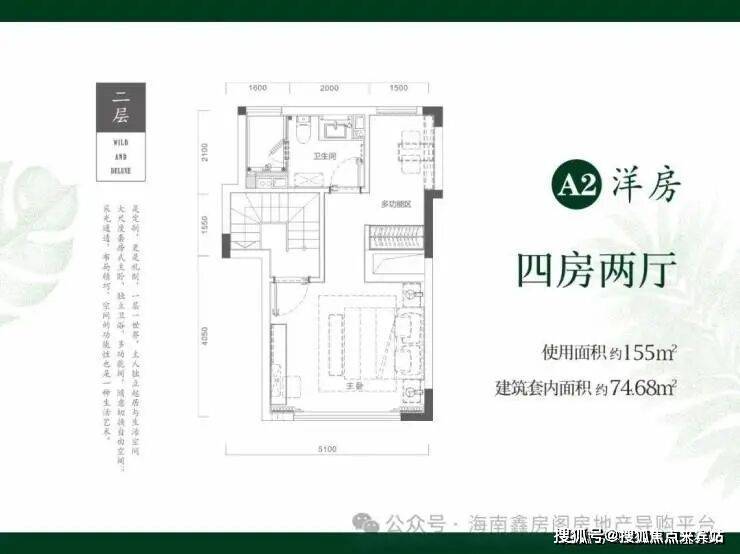 二期在售户型2:跃层洋房74.68㎡三房一厅