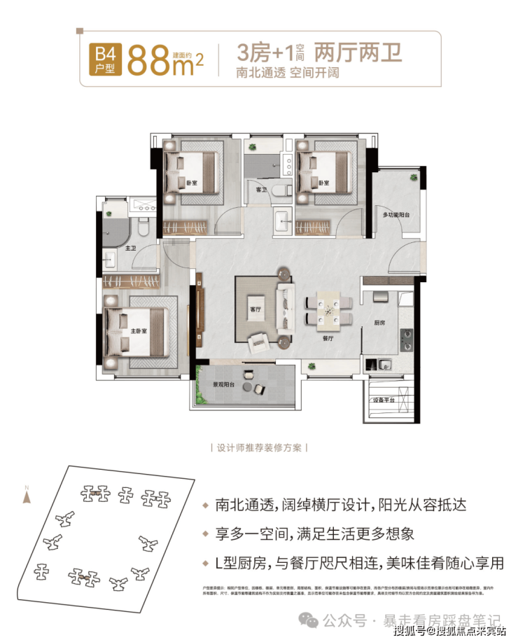 【88㎡:3房+1(空间)2厅2卫】(横厅)