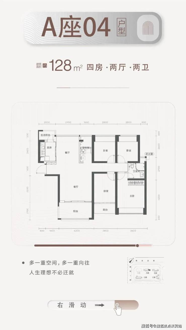 • 梯户比:A-C座2梯4户,D座2梯5户
