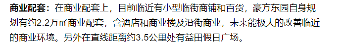 周边环境:目前豪方东园周边的环境已工厂和空地为主,东西侧均规划有住宅用地,隔路则为工厂厂房,距离燕子岭公园和马峦山公园均在直线距离2公里左右。未来或较长时间处在施工环境状态下
