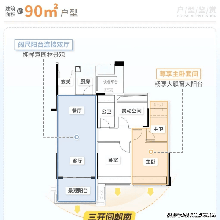 90㎡經典戶型 三開間均朝南 成長家庭優選