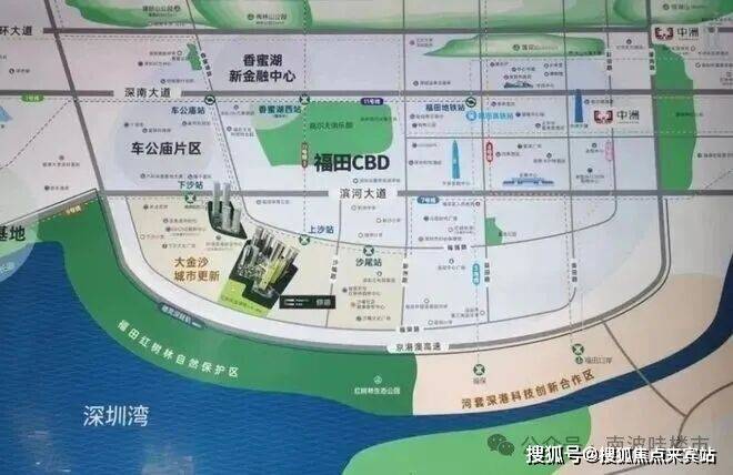 深圳中洲湾迎海二期位于福田区沙头街道上沙社区,地处福田大金沙片区。该片区是目前整个福田区域内城市更新地块最大的区域,包括了沙尾村、沙嘴村、上沙村、下沙村,政府投入了300亿进行规划,后续将规划总建面350万㎡的住宅和412万㎡的产业空间。这一区域是深圳核心区域内目前唯一一个产城一体化的城市更新单元,具有巨大的发展潜力。