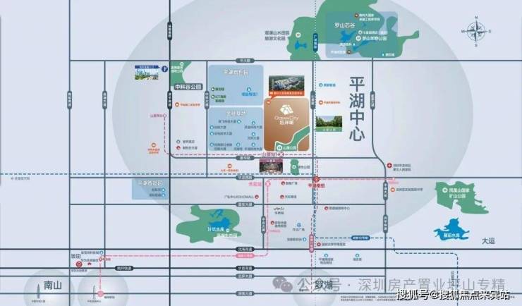 平湖,深圳几何地理中心,拥“1枢纽+2城际+3地铁+4快速路”的立体枢纽级交通。