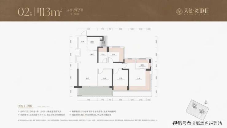 113平4房主力户型,大部分房源的采光和景观视野较好。