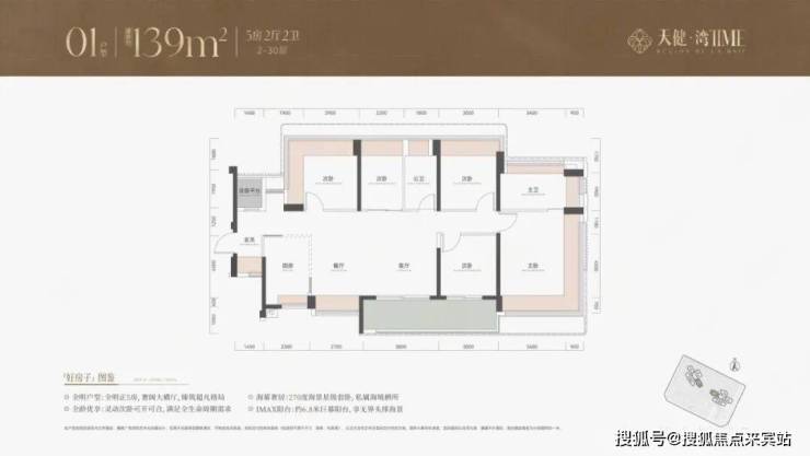 139平4房户型,同样以朝南、西南朝向为主,能够享受良好的采光和海景、山景资源。