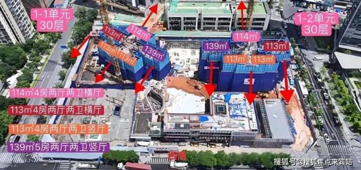 户型产品为113㎡ 4房和139㎡ 5房 约290套,2栋100米内31层住宅,2梯4户,其中主力为113㎡ 4房,具体户新图暂未公布。