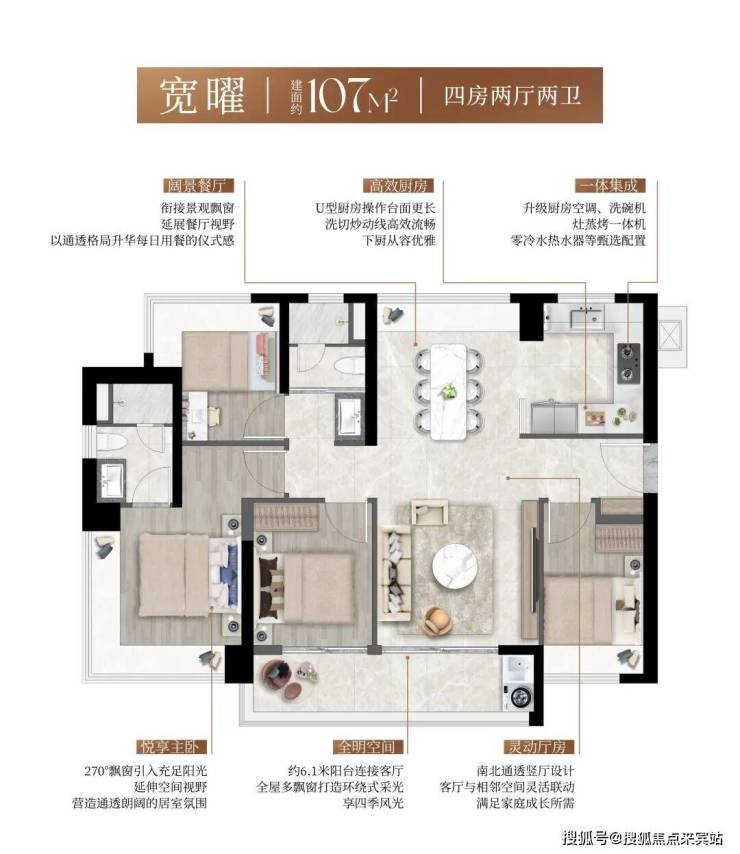 全南向户型社区,结合阔景阳台与多面飘窗,形成三面超长采光面,实现“阳光全屋覆盖”。