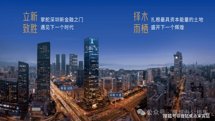 深南大道是深圳的黄金大道,进驻深南大道首排物业也是各大企业的首选,是企业实力及企业形象的重要表现。深铁置业大厦位于深南大道与香蜜湖路交汇处,深南大道首排,强昭示性,企业实力凸显。同时,深铁置业大厦与香蜜湖新金融中心的改革开放展览馆、深圳金融文化中心、国际演艺中心位于深圳主干道香蜜湖路两侧,成对角发展之势,商务价值更大。