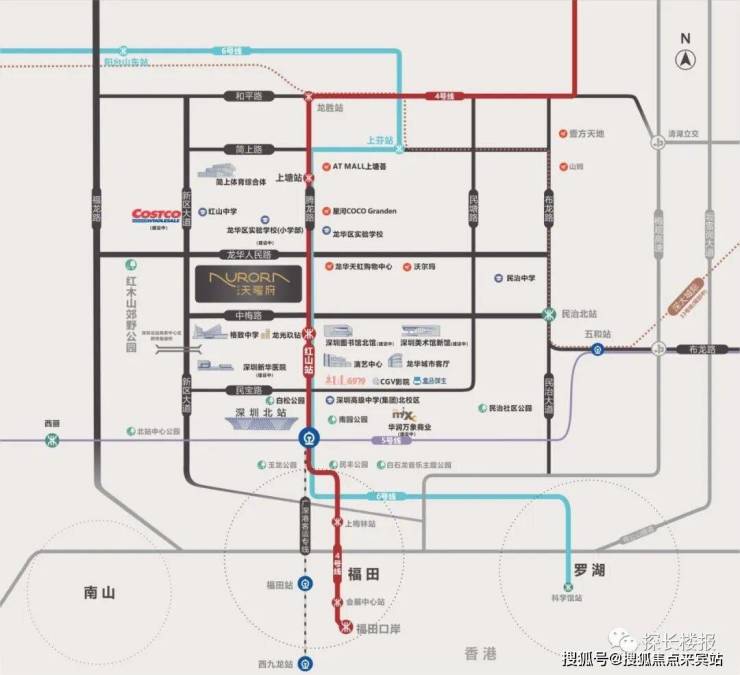 项目距离双地铁4&6号线交汇红山站约450米,一站抵达深圳北站,换乘5号线,2站直达香港西九龙。