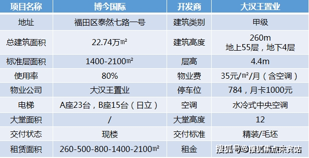 深圳博今商务广场(博今国际)坐落于福田CBD核心区车公庙板块,是集产业研发、高端办公、商业中心及休闲娱乐于一体的超甲级商务综合体。项目由深圳市大汉王置业有限公司开发,总建筑面积约22.75万平方米,包含两栋超高层塔楼(A座260米/55层、B座200米/41层)、裙楼及地下4层停车场,是车公庙片区的标志性建筑。作为深港科技创新合作区门户,博今商务广场以“智慧生态+国际商务”为核心理念,采用全玻璃幕墙设计,融合垂直绿化与低碳科技,获LEED金级认证及中国钢结构金奖。项目已吸引中建二局、光汇石油、厦门国贸等知名企业入驻,形成金融、科技、传媒等多产业融合的创新生态圈。