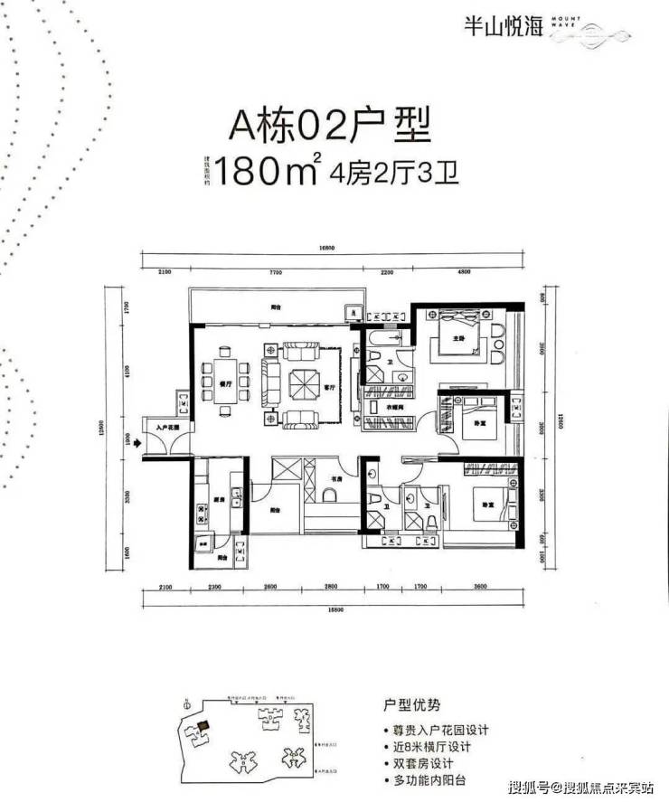 A栋02户型 建筑面积约180㎡ 4房2厅3卫