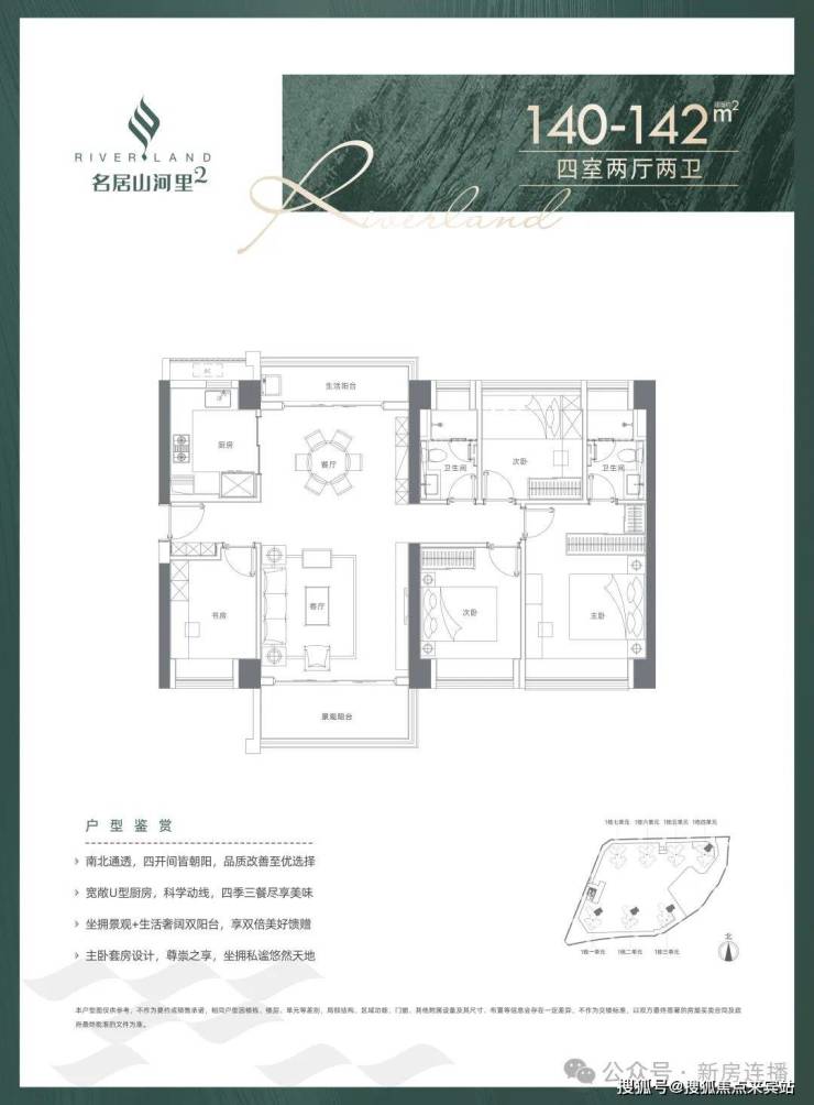 140-142平4房2厅2卫:南北通透,不含赠送使用率在74%
