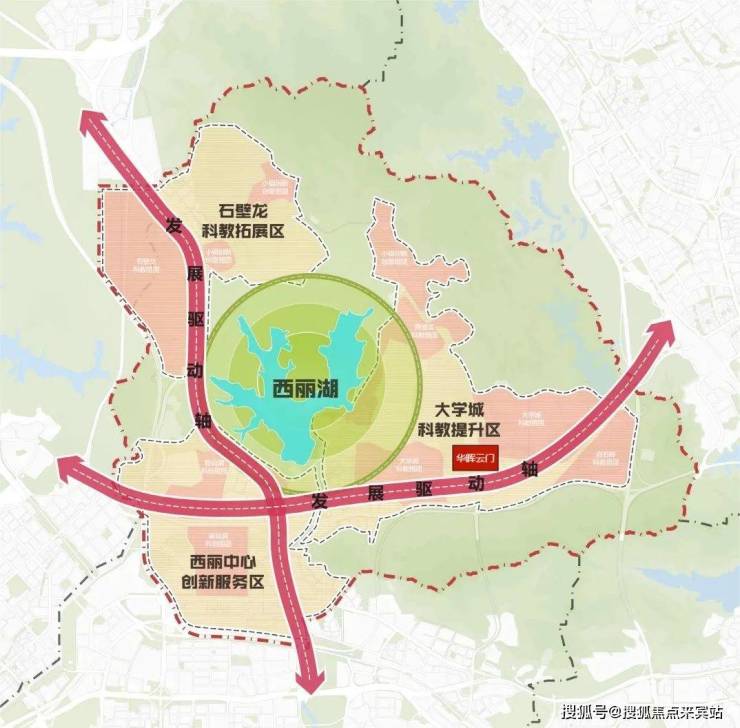 华晖云门:坐落在留仙大道北,学苑路南,处在南方科技大学正门南侧,本区域路网四通八达,交通便捷,景观、人文、配套资源丰富,项目整体坐北朝南,与地铁环中线塘朗站无缝接驳,南靠塘朗山森林公园,地段优势不言而喻