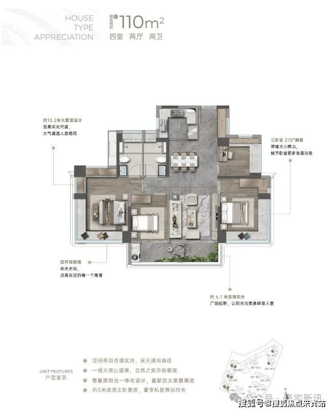 113 平,2 - 1 - 02 户型,阳台西北向看学校,卧室东南向看花园大南山折后价:848 万 - 907 万,有高中低楼层可选