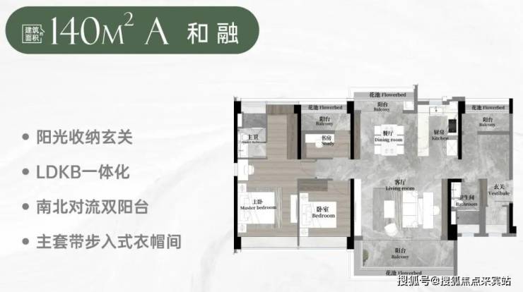 140平方和沐:(3+1)室2厅2卫,入户玄关+超大阳台+双套间