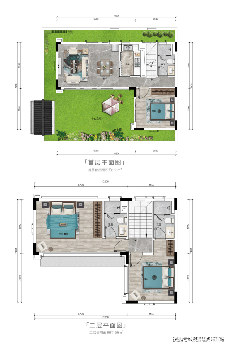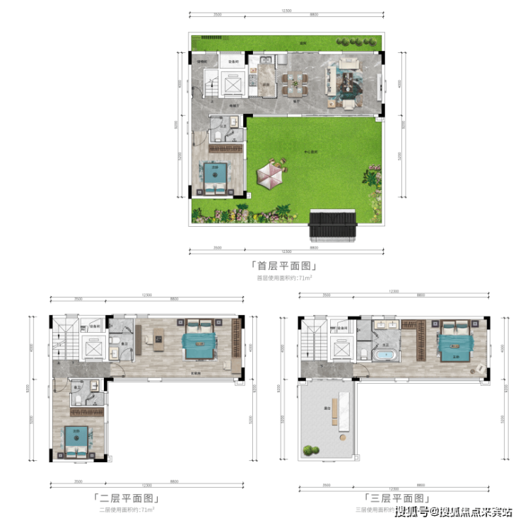 该户型共三层高,三楼配备空中天台,你可以尽情发挥想象,在馥郁之中与三五知己畅叙,又或者设计成户外健身房、空中书阁、观星茶室等。