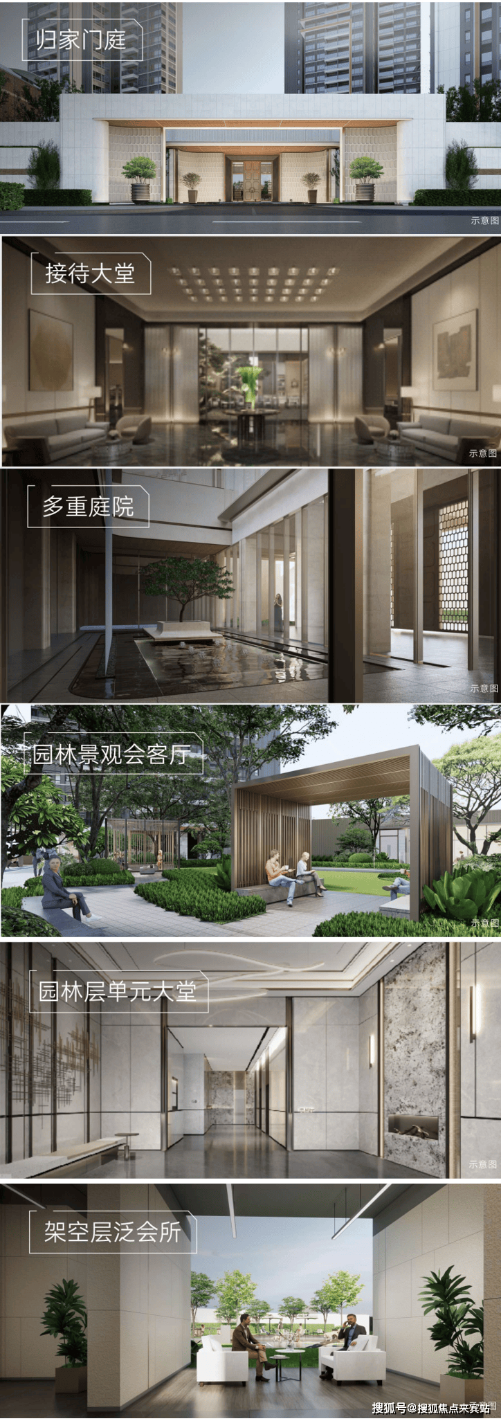 步行归家礼序,尊贵入户体验:仪式门廊→接待大堂→下沉庭院/会所 →园林景观会客厅→架空层泛会所→ 园林层单元大堂