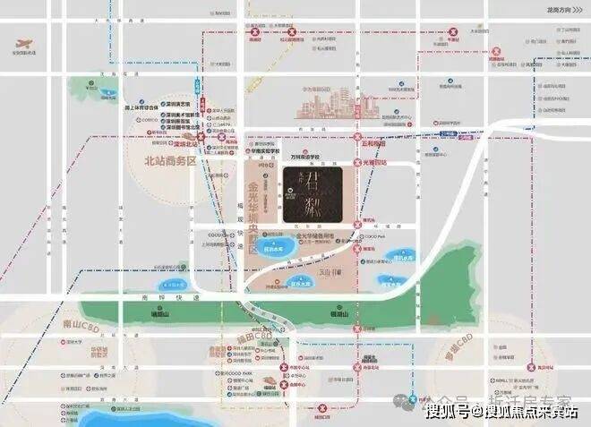 ①双枢纽(深圳北站+五和站),1小时无缝对接大湾区;五和站城际枢纽,5/10号线及规划中的深大、深惠、深广中轴城际。