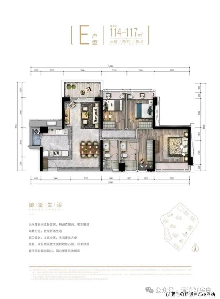 建面约103-200㎡3-4房宽境美宅,罗湖屈指可数的纯粹大户型高端住区,全景观超大阳台,将山景、水景、园景尽收眼底;双主卧套房配置,纵享私密奢华空间。作为核心城区纯粹大户型,传承世代家族信仰。