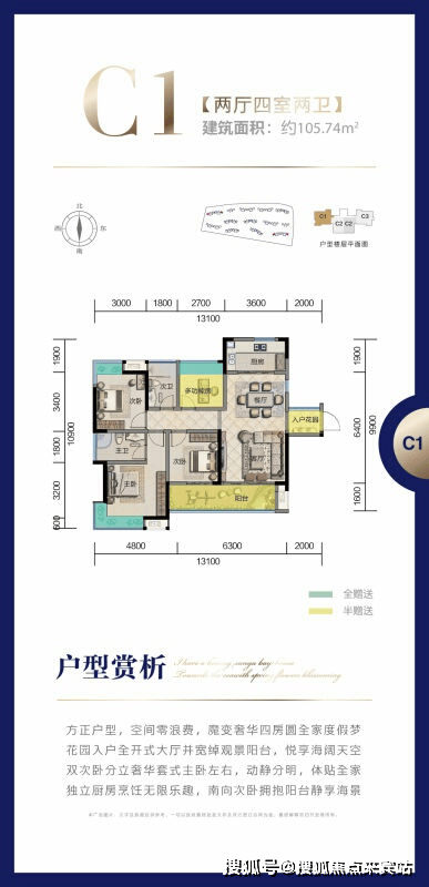 在售建面:81-125㎡(高性价比2-4房),短板式户型,配带超大景观阳台和轻奢精装交付;