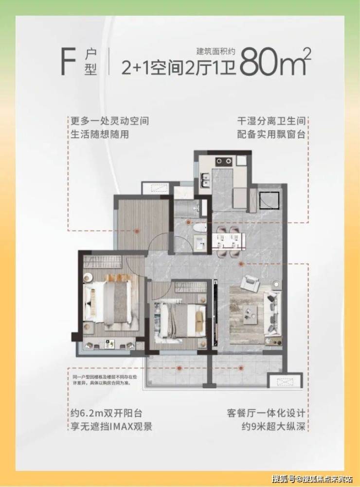 越秀建发玺樾 | 珺樾建面约80㎡户型,3房配置,极具性价比!