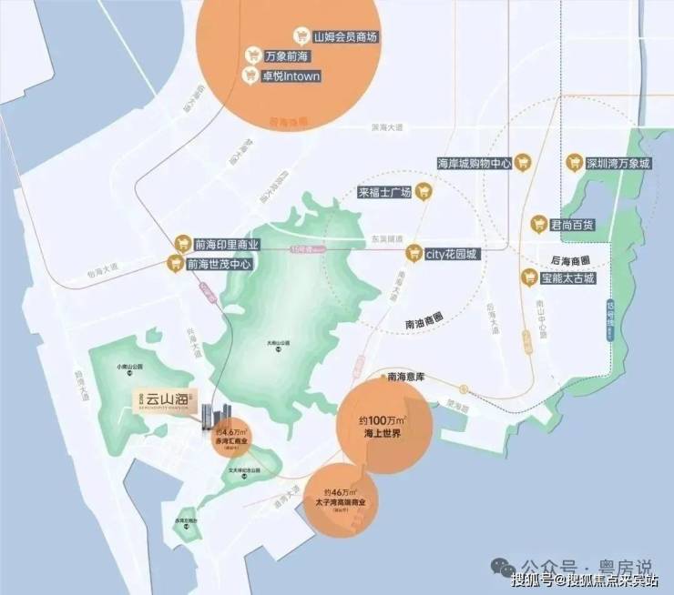 一路之隔有约4.6万㎡赤湾汇商业(建设中);直线距离约1.8公里享约46万㎡太子湾高端商业(建设中),如K11、兰桂坊等;距离约2.2公里抵达约100万㎡海上世界;2站距离抵达前海印里商业、前海世贸中心;6站距离抵达万象前海、前海卓越intown;7站抵达前海山姆会员商店等商圈;直线距离约6公里范围内分布有花园城、海岸城、宝能太古城、来福士广场等多个大型shoppingmall。
