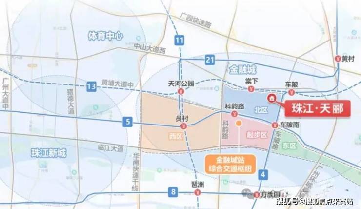 整个金融城起步区、东区和北区,居住用地仅占5%,而在北区唯一的可开发居住用地,就是低调面市的珠江天郦。