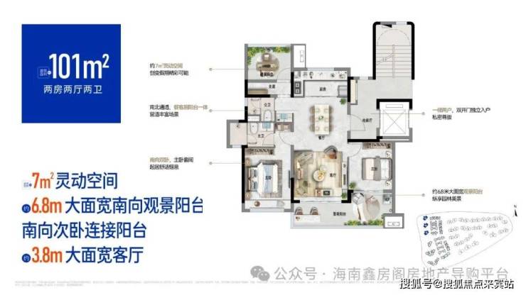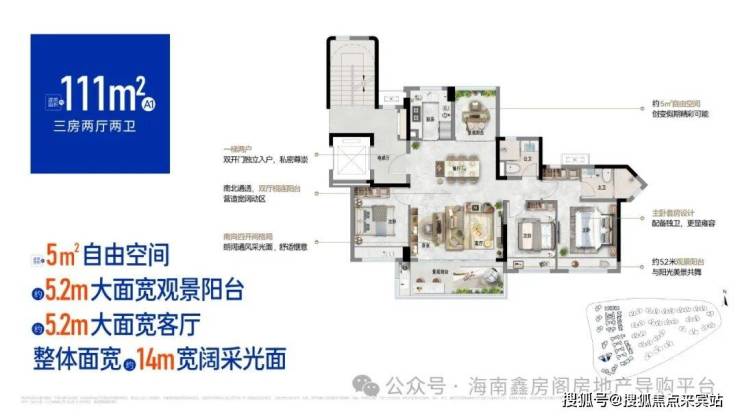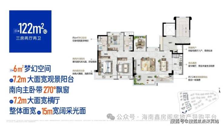 约5.2-7.2米面宽观景阳台,尽享宽阔视野