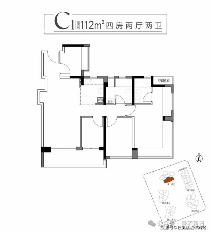 三:建面约112平方C1户型四房两厅两卫